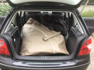 Zo lang u een neerklapbare achterbank hebt, past het in elke auto! Op de onderstaande foto is te zien hoe dit er uit zou zien.